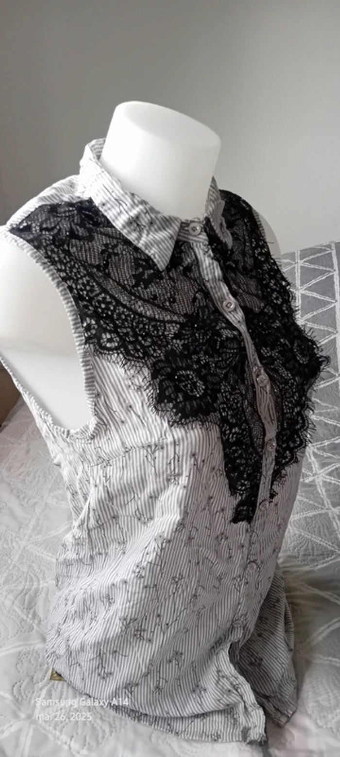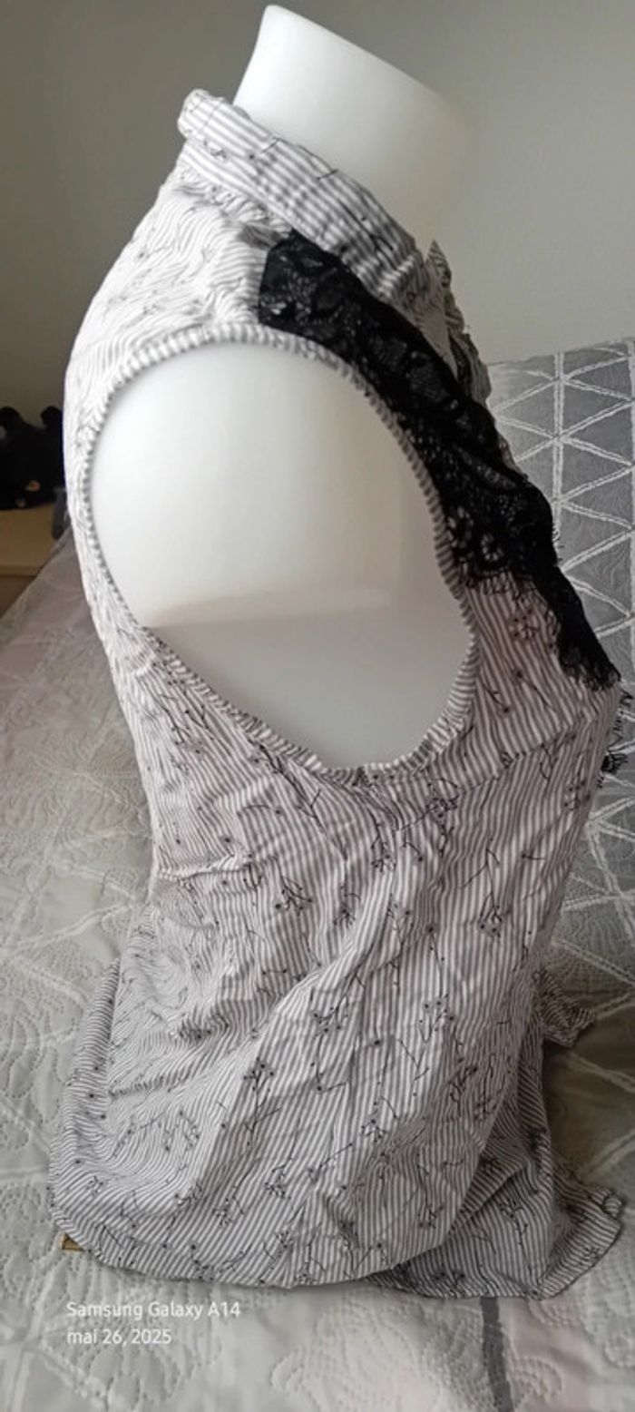 Blouse sans manches avec dentelle et perles à rayures gris noir femme 40 amogo mode - photo numéro 9