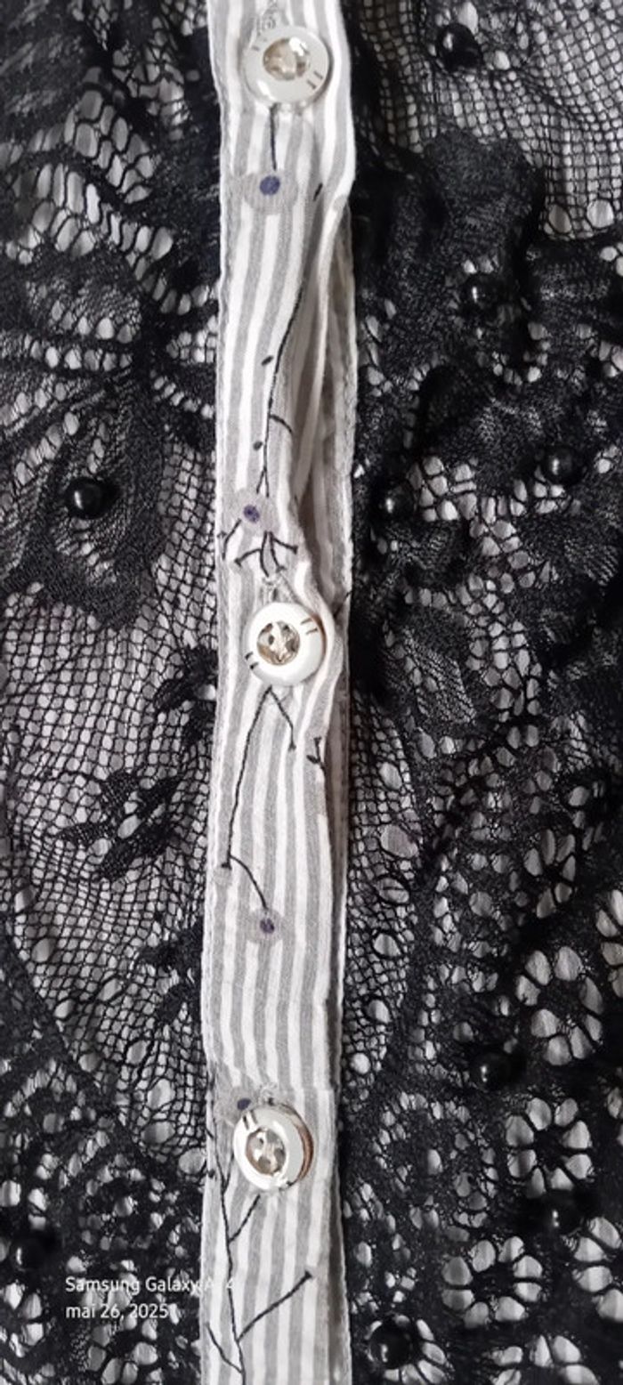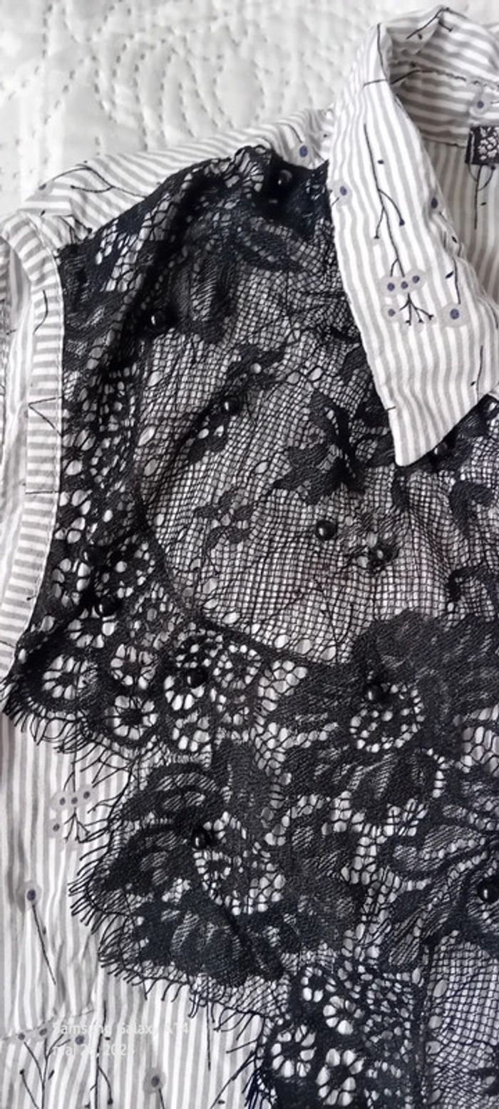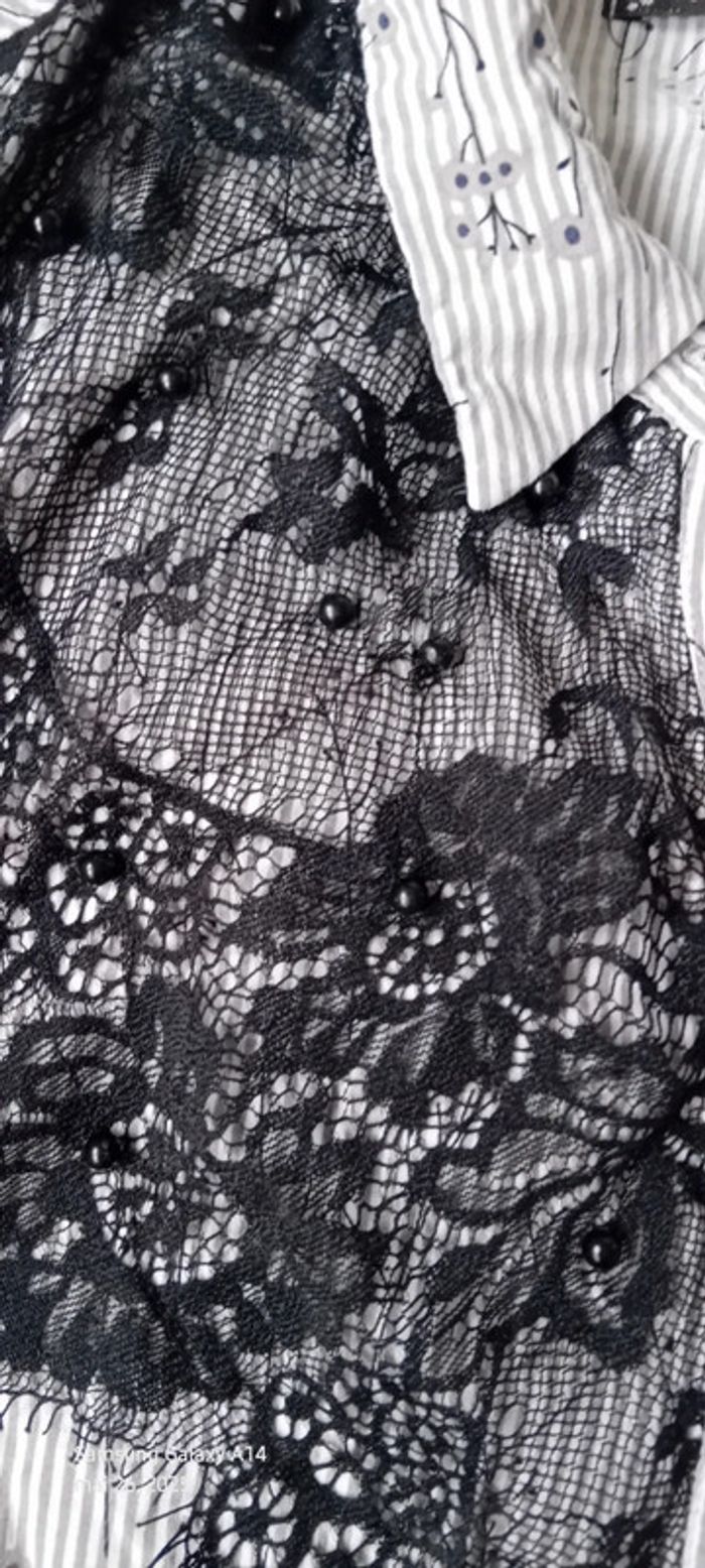 Blouse sans manches avec dentelle et perles à rayures gris noir femme 40 amogo mode - photo numéro 11