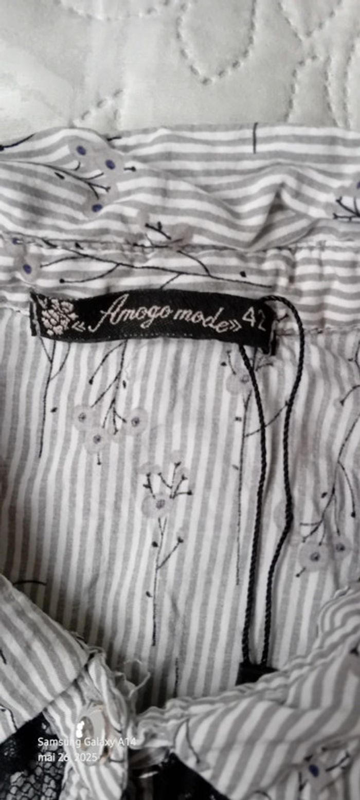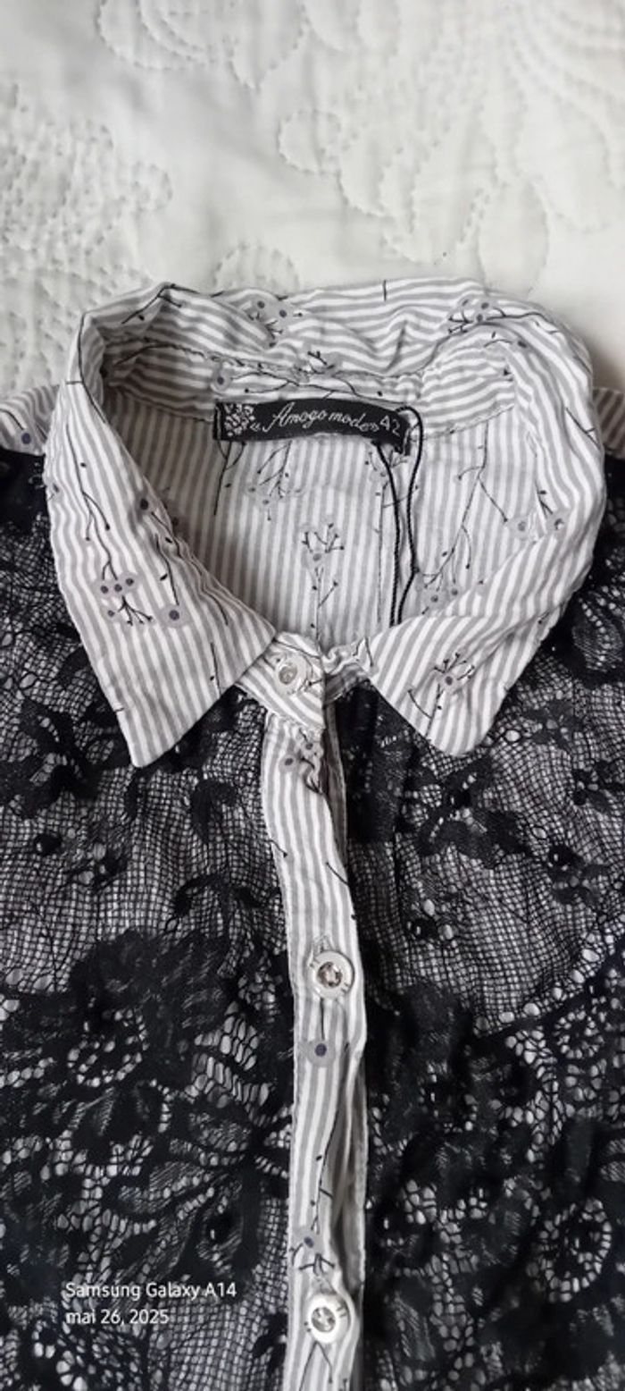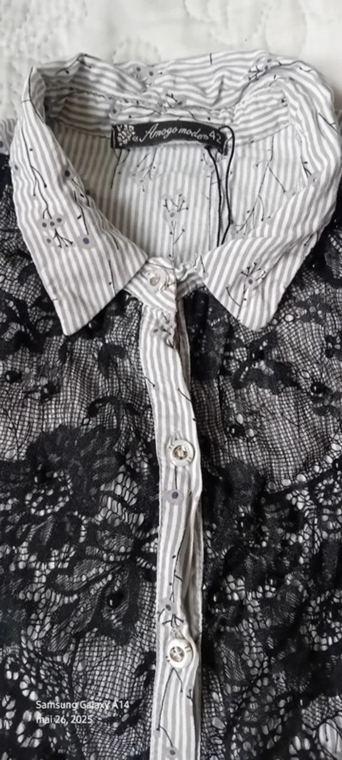 Blouse sans manches avec dentelle et perles à rayures gris noir femme 40 amogo mode - photo numéro 14