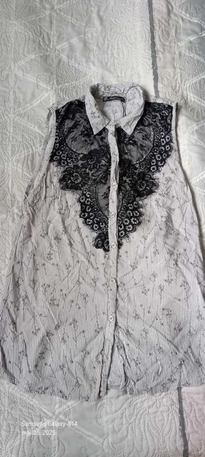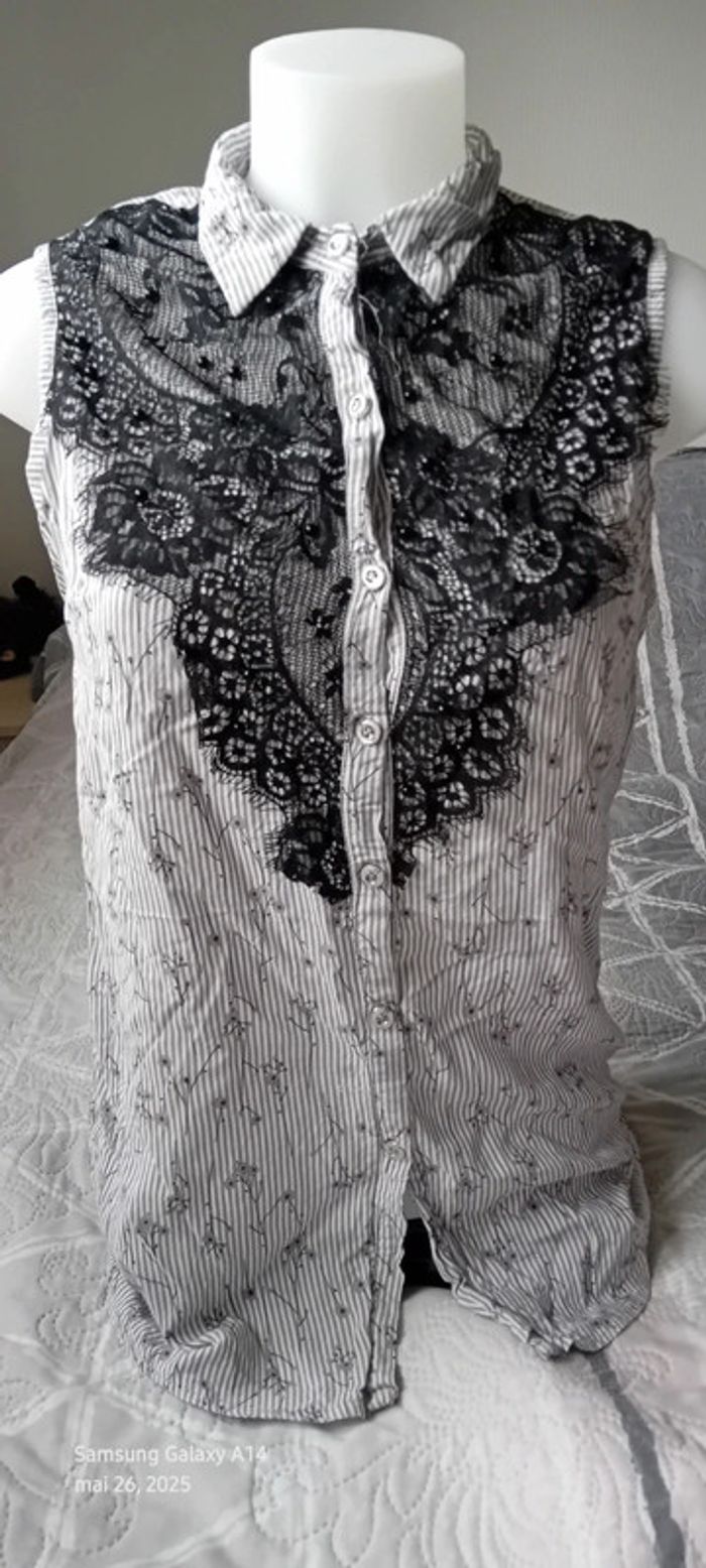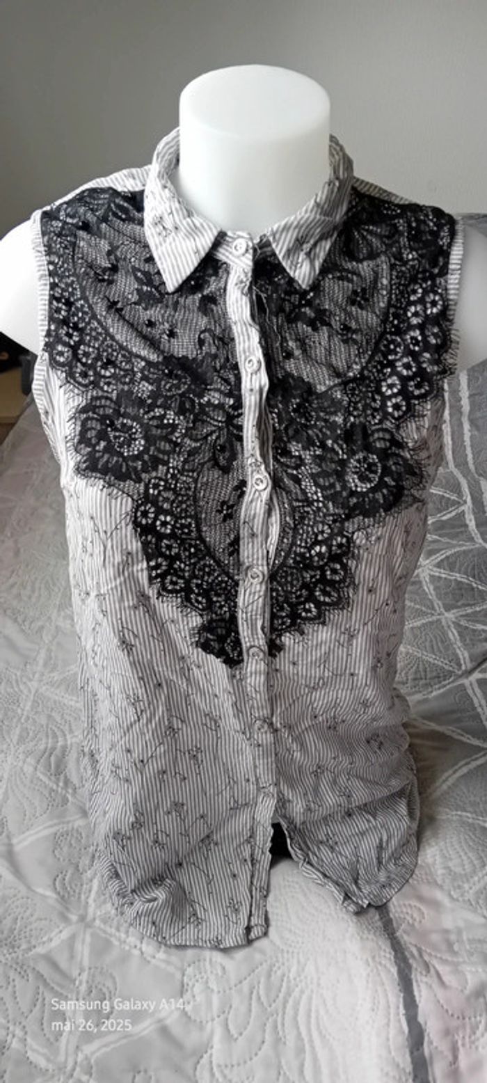 Blouse sans manches avec dentelle et perles à rayures gris noir femme 40 amogo mode - photo numéro 1