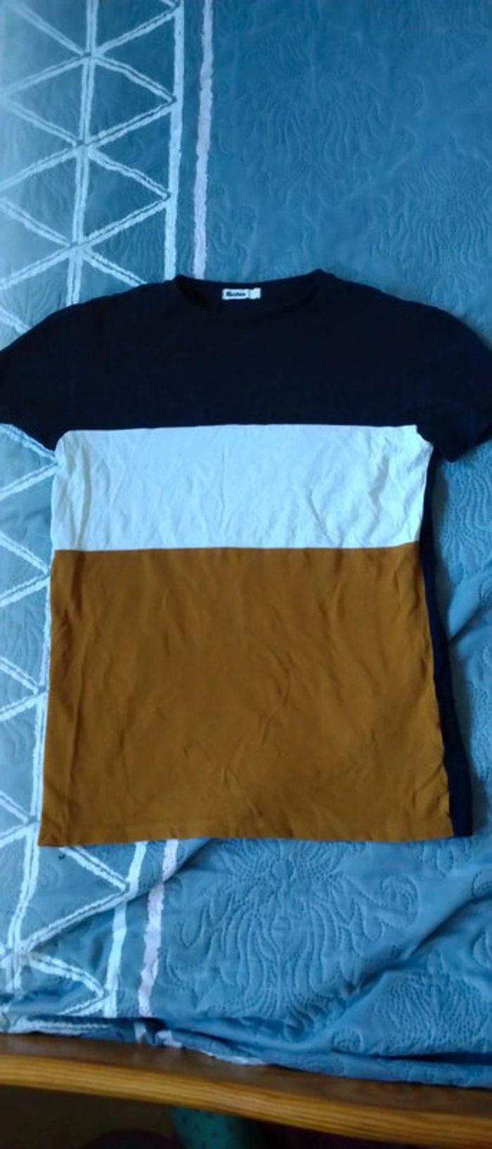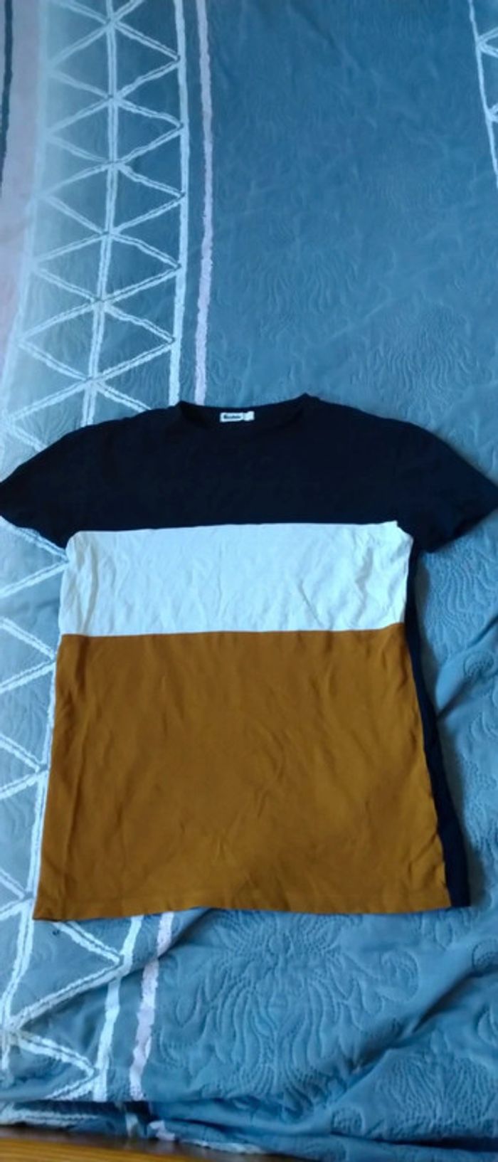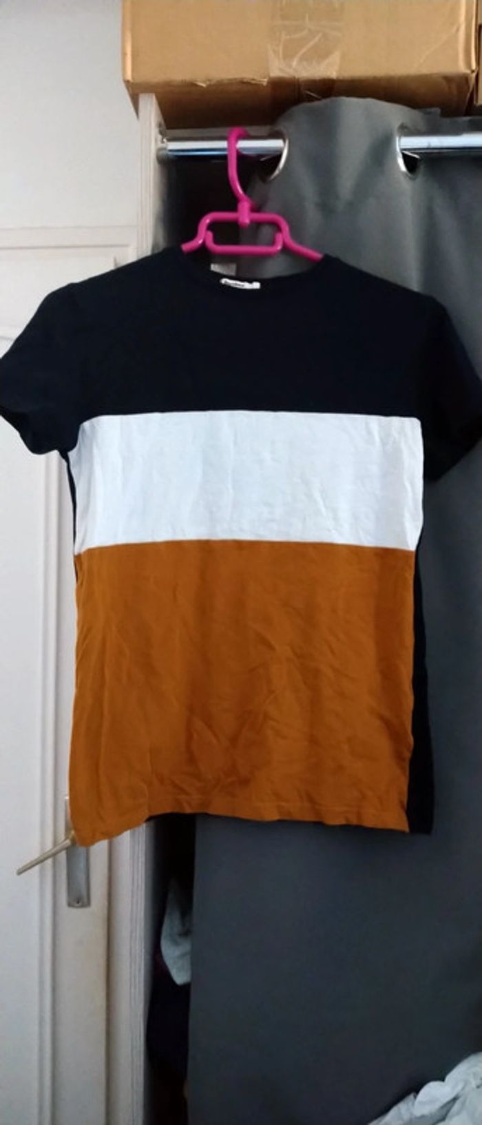 Tee shirt manches courtes en coton piqué blanc noir et moutarde juste porté une ou deux fois en excellent état comme neuf N hésitez pas à faire un lot dans mon dressing pour bénéficier d une réduction #midole #midolehomme #tee-shirt #bizzbee #xs #teeshirtbizzbee #bizzbeexs #tee-shirtmanchescourtes #teeshirtricolore #noir #blanc #moutarde #midolegarçon14ans #midolegarconxs