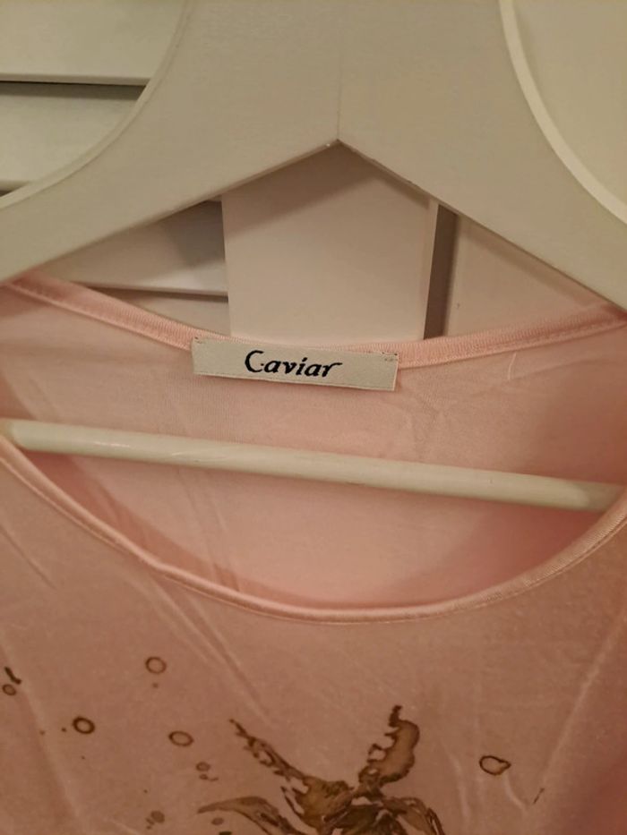 Tee-shirt rose  pale motif  fleurs taille 44 - photo numéro 2