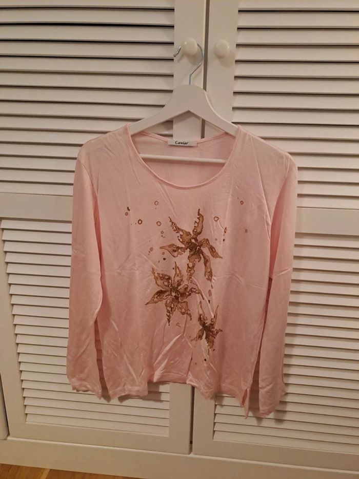 Tee-shirt rose  pale motif  fleurs taille 44 - photo numéro 1