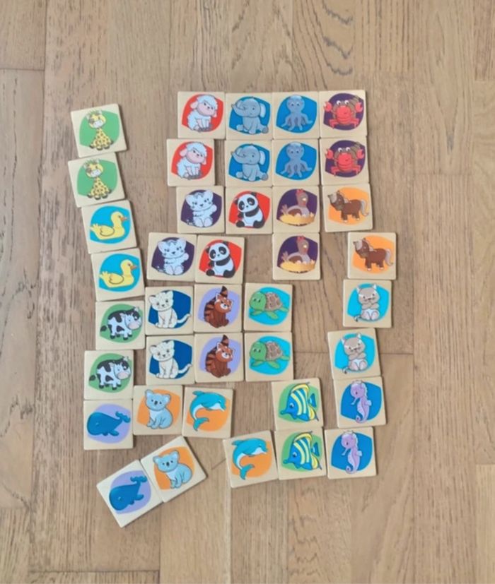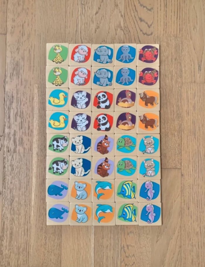 Jeu de mémoire en bois composé de 40 pièces, parfait pour les enfants ou activités éducatives - Thème animaux - Vendu sans boîte – peut être rangé dans un pochon ou une boîte perso (Manque boîte d’origine mis dans un contenant) Suivre le lien pour d’autres jeux à partir de 2 ans => #loukhejeenfant => #loukhejefille2ans => #loukhejefille3ans => #loukhejefille4ans => #loukhejefille5ans => #loukhejefille6ans => #loukhejefille6ans => #loukhejefille7ans => #loukhejejouets => #loukhejepuzzles