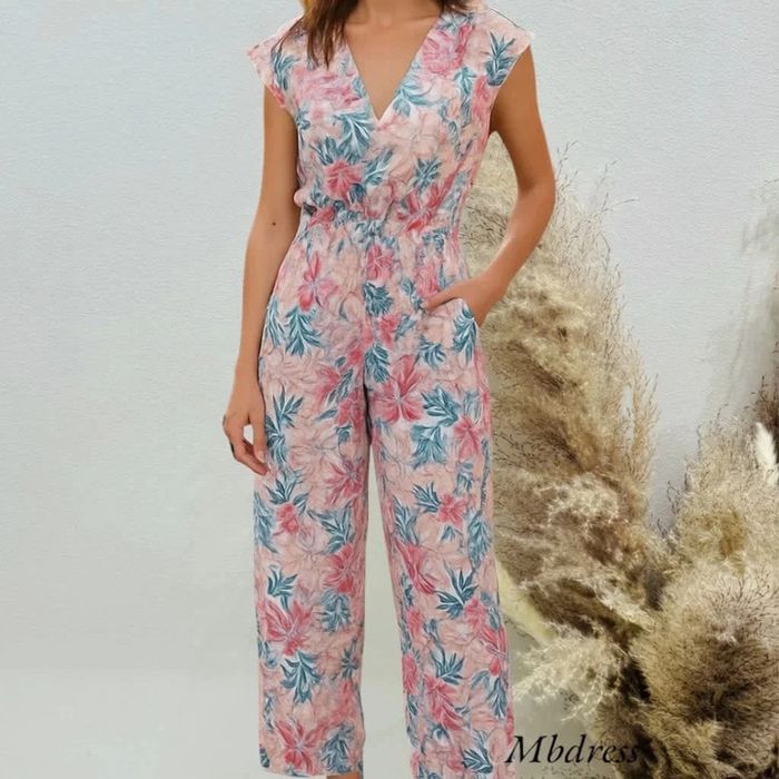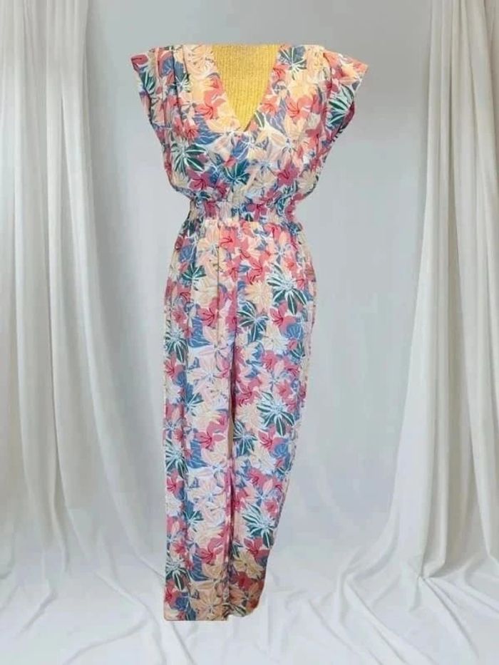 Jolie combinaison femme fluide et agréable mi saison ou été Modèle doublée à la poitrine Élastique à la taille et au dos Imprimé multicolore fleuri Taille 36/38 S/M #femme #combinaison #dosnu #faisladifference #taille3638 #combilongue #ete #misaison #printemps