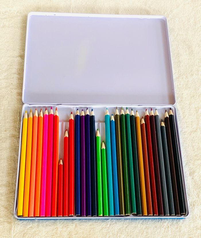 Boîte de 30 crayons de couleur hexagonales en boite métallique *Certaines crayons utilisés et entamés. Différentes longueurs. ⛔️ Prix FIXES, NON négociables 🚨  👏🏻 Réductions sur les lots 👍🏻 #crayons #boitemetallique #loisirscreatifs #scrapbooking #cc_divers #cc_scrapbooking #cc_loisircreatifs