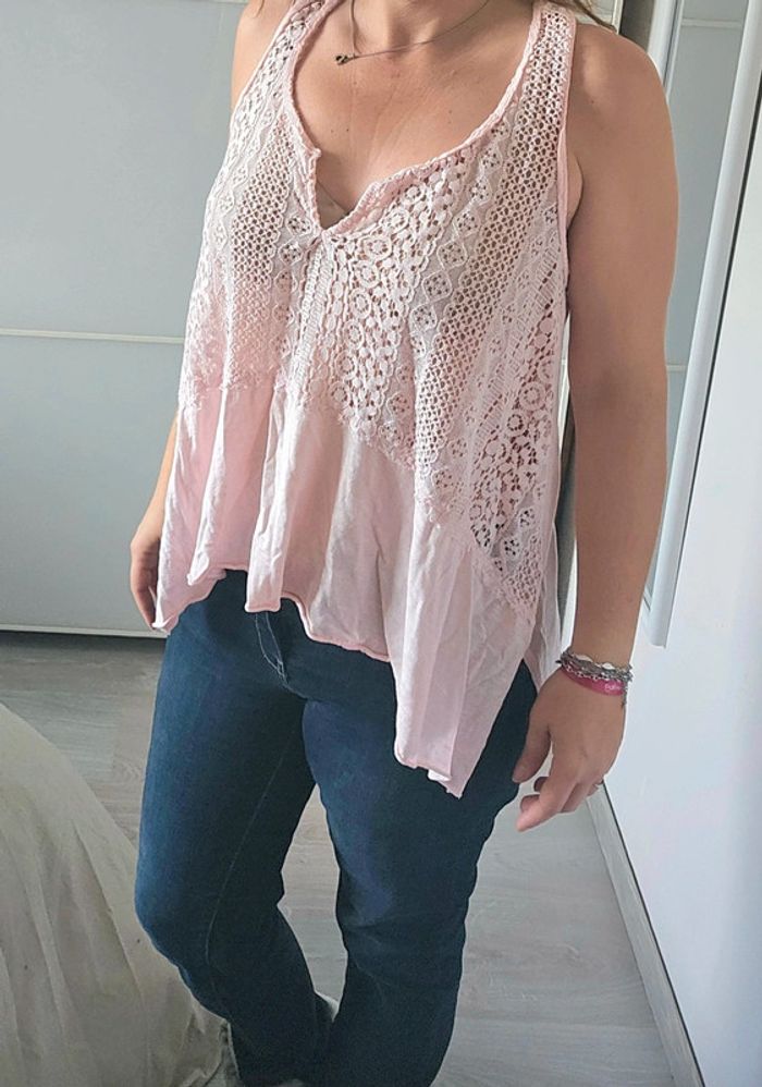 📌 Lot 20% de remise pour l'achat de 5 articles, suite ... Débardeur rose pale, forme asymétrique, broderie sur le devant ,très léger ➡️Largeur à plat sous les bras  50 cm ➡️Longueur 68 cm au plus long ⭐ Excellent état ✈Envoi rapide des colis 💗 Abonnez vous à mon profil, nombreux articles ajoutés régulièrement ! 🌸 Tapez Laetitresors pour voir mes annonces #laetitresors_debardeur40 #debardeur #rose #clair #hollister #asymetrique #bretelle #dentelle #broderie #laetitresors