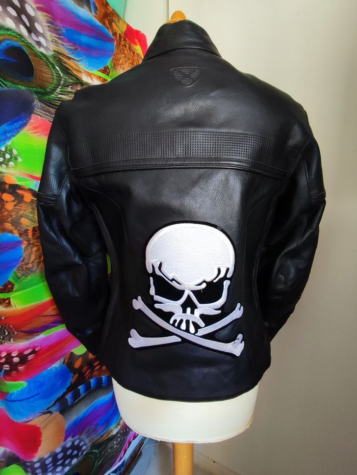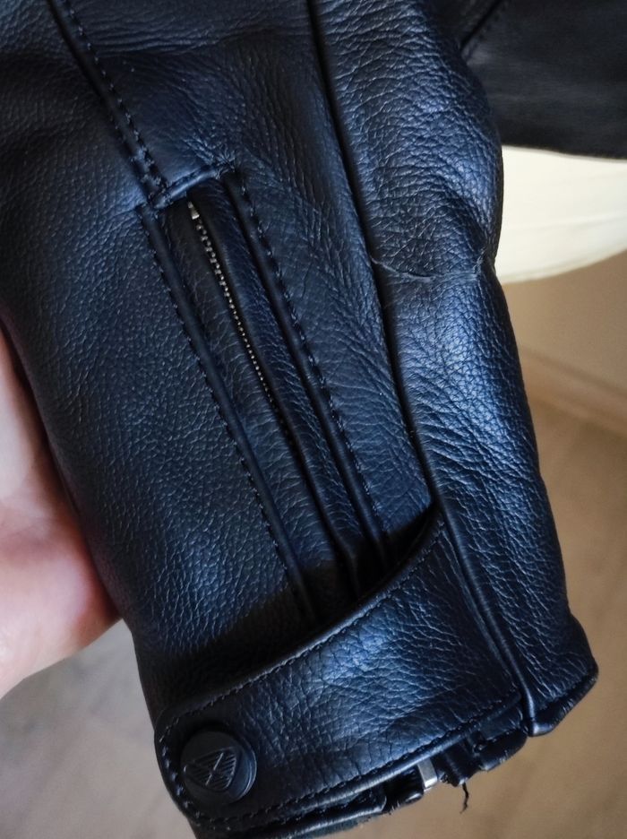 - Veste de moto en cuir peu servie - Coudes renforcés - Doublure hiver amovible - Au dos j'ai thermocollé un patch skull mais je pense qu'il est possible de l'ôter avec un sèche cheveux bien chaud. Puis nettoyer la colle du patch avec un produit adapté. - Il y a deux petits accros/éraflures voir photos, mais c'est superficiel (merci le chat!!!) - Poche dorsale avec la possibilité d'y insérer une protection. Je ne l'ai plus. - Plusieurs poches intérieures.