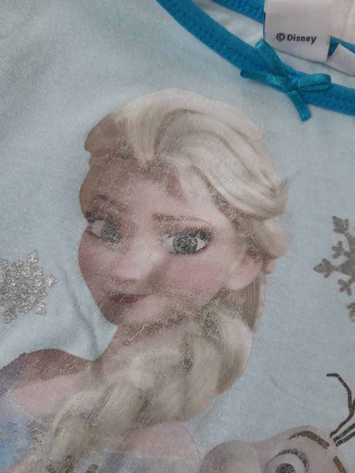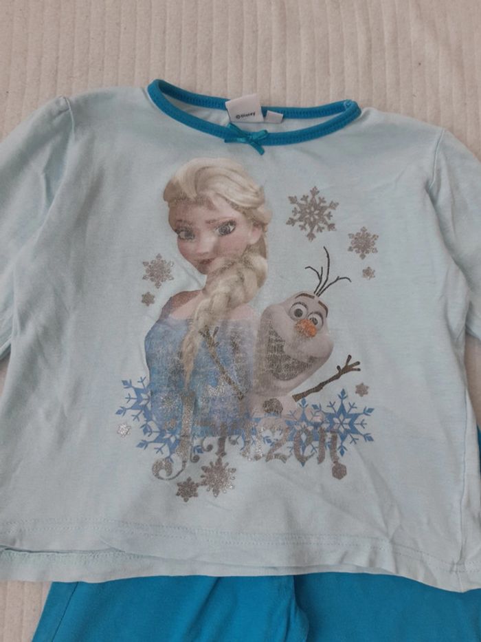 Pyjama fin haut manches longues et pantalon Elsa reine des neiges et Olaf, flocons Porté plusieurs fois, tâche voir photo #anthonyagnes_bebe24M