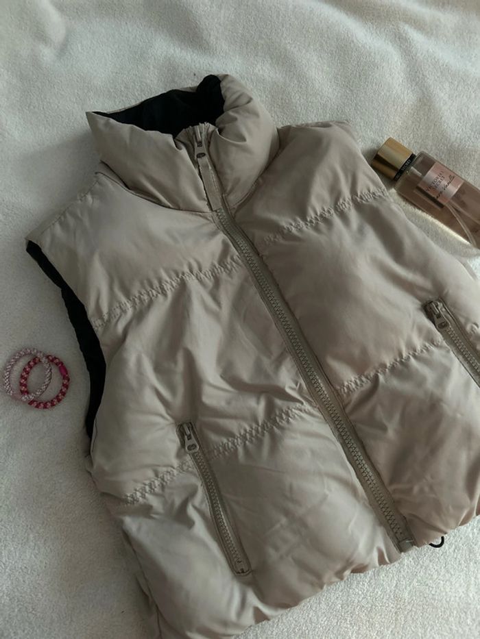 Doudoune sans manches un peu crop top En très bon état Couleur : beige / noire Acheté ~20€