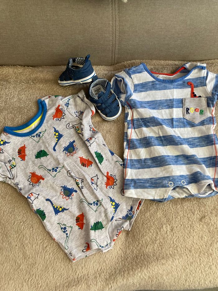 Combishort taille 0-3 mois et chaussures 0-3mois Très bon état.