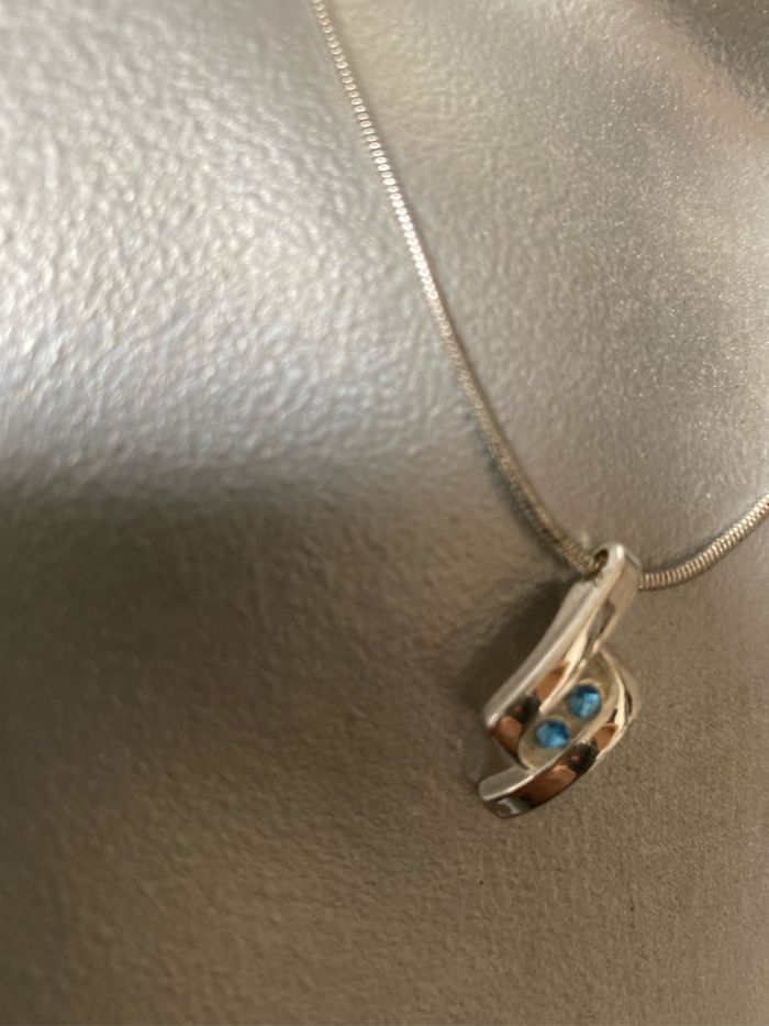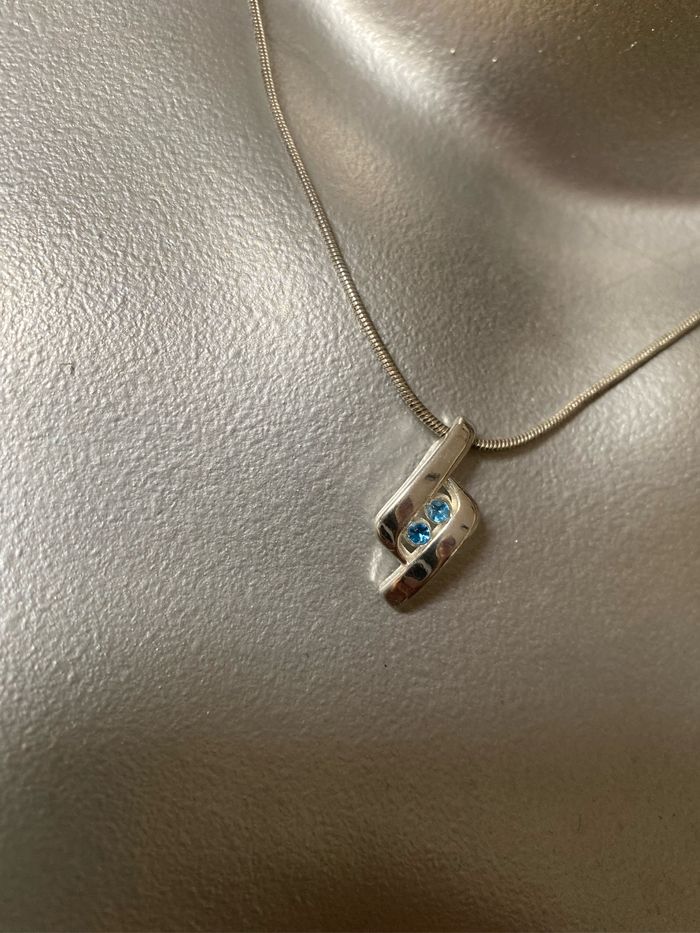 Joli bijou collier pendentif argent 2 pierres bleues - photo numéro 1