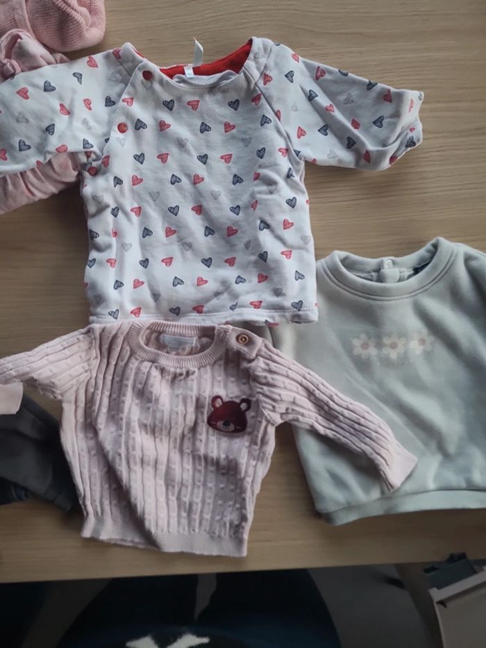 Lot de 16 pièces taille 3 mois. - un ensemble - 3 pulls - 4 leggings - 2 tuniques - 1 tee-shirt - 1 robe - 1 gilet - 2 collants Très bon état