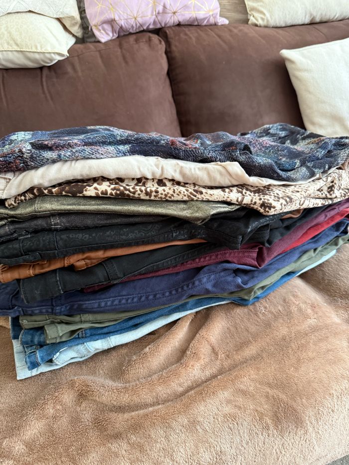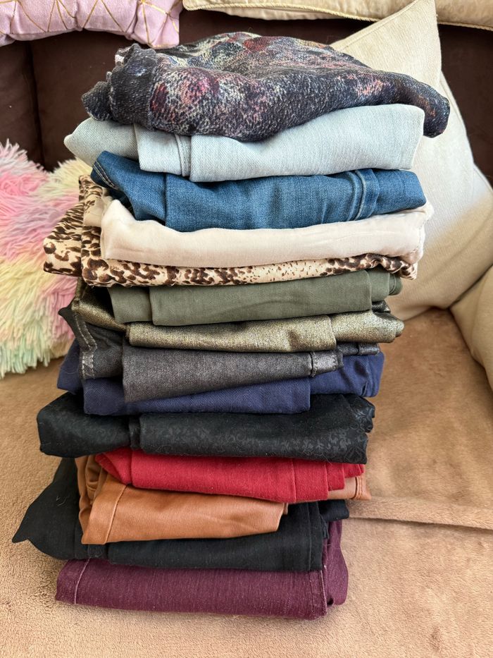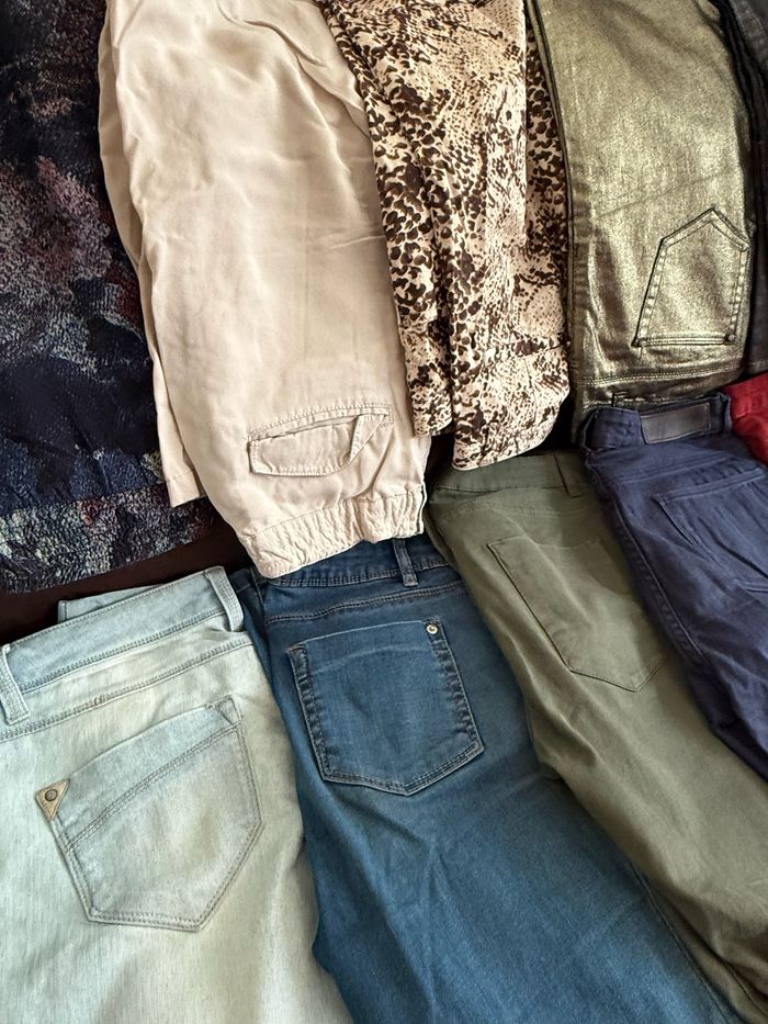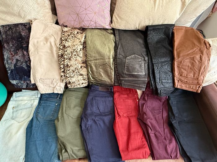 JE NE DIVISE PAS LE LOT. Lot 14 jeans & pantalons marque diverse: Pimkie, cache cache, camaïeu, Monoprix, dorotenis. Neuf pour certains.