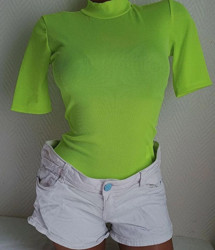 Haut t-shirt bodie pour femme taille XS couleur menthe marque Jennyfer Longueur 72 cm Aisselle à Aisselle 38 cm Manches 24 cm