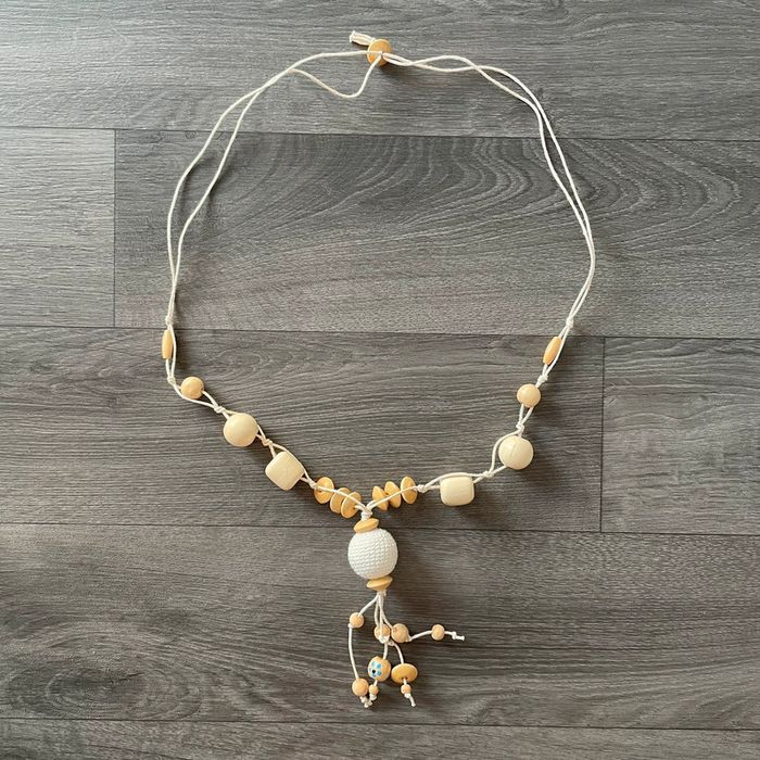 Bonjour, Je vends ce collier fantaisie blanc & bois acheté en Thaïlande mais jamais porté 🇹🇭 Remise en mains propres à Bussy Saint Georges. Envoi soigné avec une préférence pour Chronopost (plus proche et flexible) 📦