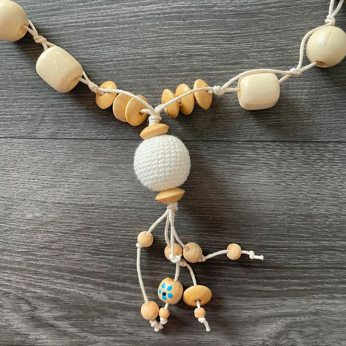 Collier fantaisie blanc & bois - photo numéro 2