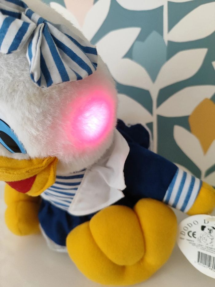Jolie peluche canard Donald interactive. Quand on lui appuie sur la main le canard chante et fait de la lumière. En parfait état ! Neuf. 40 cm N'hésitez pas à consulter mon dressing pour plus de peluches Disney 🙂🌸