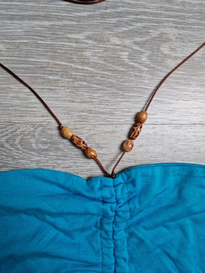 Top vintage turquoise Pimkie XS neuf avec perles en bois - photo numéro 4