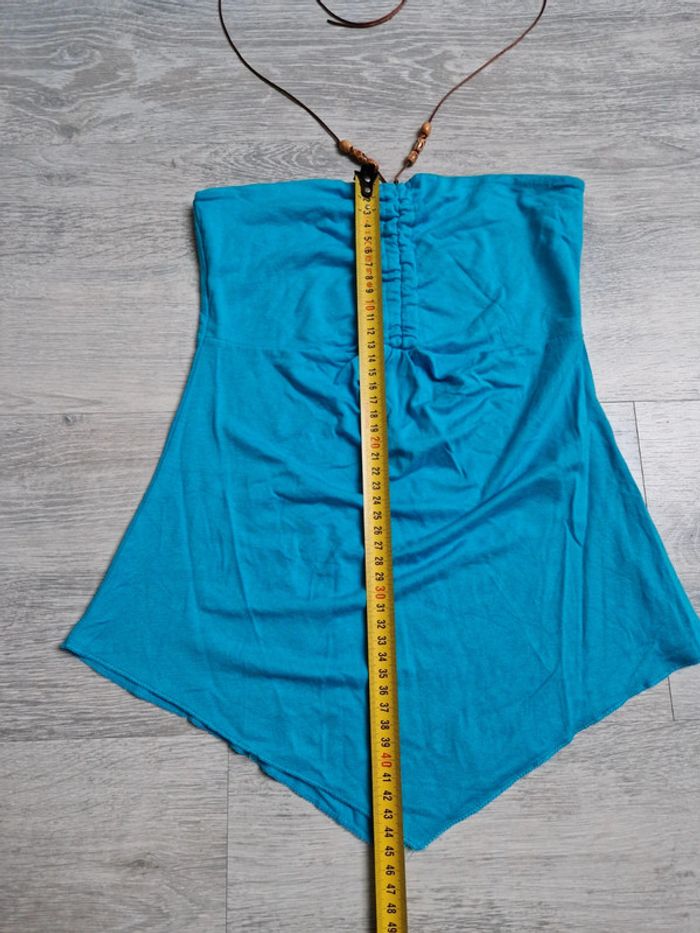 Top vintage turquoise Pimkie XS neuf avec perles en bois - photo numéro 8
