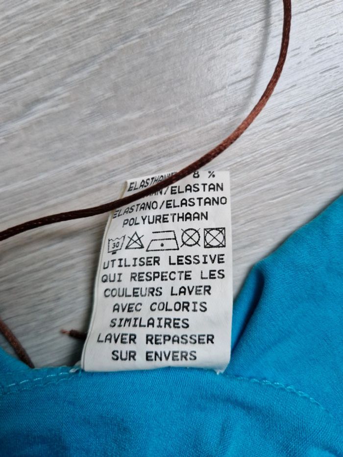 Top vintage turquoise Pimkie XS neuf avec perles en bois - photo numéro 9