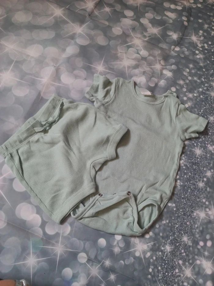 Ensemble body et short 12/18 mois