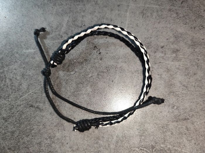 Bracelet double tresse simili cuir noir et blanc - photo numéro 1