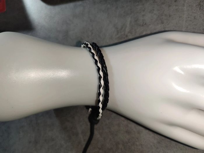 Bracelet double tresse simili cuir noir et blanc - photo numéro 2