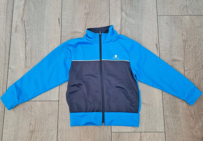 Lot de vêtements 6 ans garçon comprenant 2 vestes, 1 polo, 4 tee-shirts et 1 short, en détail : Veste zippée bleue et bleue marine, marque Domyos. Veste zippée uhlsport "Entente des portes du Béarn". Rouge et blanc. Avec poches. Polo garçon Lee Cooper manches courtes. Écusson brodé.Bleu marine et gris.Tissu superposé dans le dos. 1 tee-shirt bleu marine "The New York Harbour". Marque E-Bound Eartkbound. Taille 6 ans. 1 tee-shirt orange - corail "Miami 09". Marque Scott & Fox. Taille 6 ans. Un petit trou au niveau d'une couture à cause de l'étiquette de prix, mais qui n'a pas grossi. 1 tee-shirt bleu "Kihawo Sports". Marque La Redoute. Taille indiquée 8 ans, mais taille petit comme du 6 ans. 1 tee-shirt bleu avec palmiers 🌴 Hawaï. Taille noté 8 ans, mais il taille petit comme un 6 ans. Kiabi. 1 short Puma bleu marine, en parfait état.