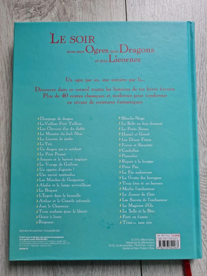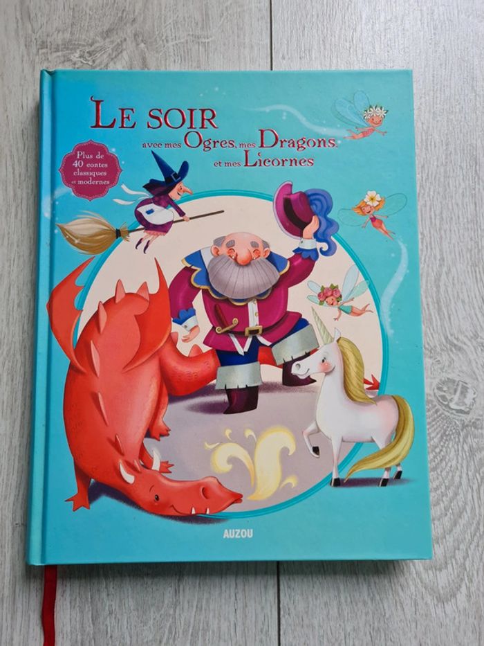 Le soir avec mes ogres, mes dragons et mes licornes, d'Auzou Plus de 40 contes classiques et modernes. Livre coloré avec de belles illustrations. Prix d'achat 12,95€