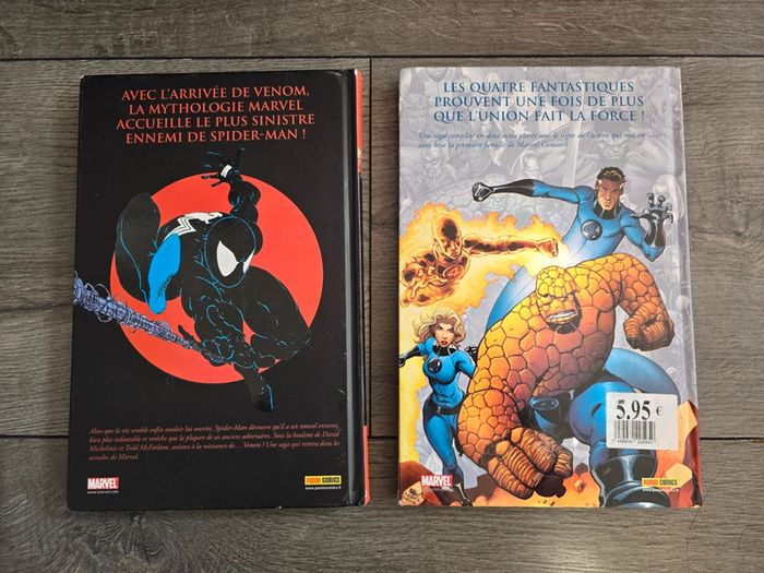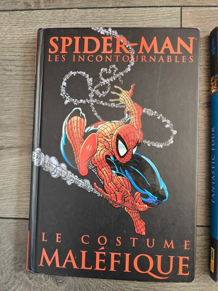 Spider-man les incontournables- Le costume maléfique Marvel les incontournables- Fantastic four Couvertures cornées mais à l'intérieur les pages sont en très bon état.