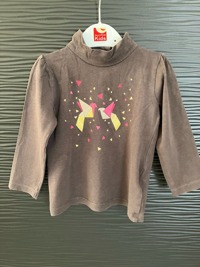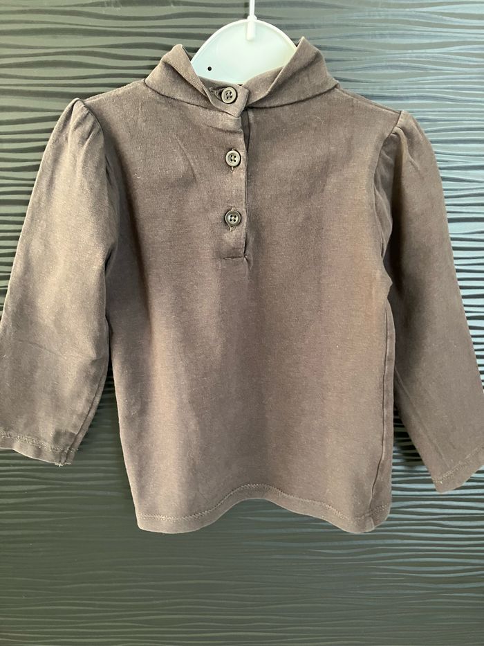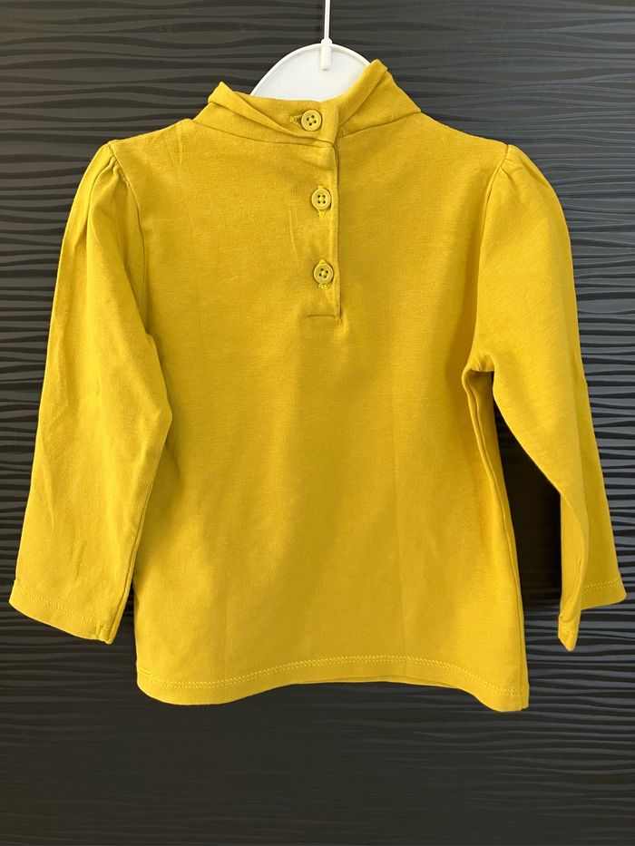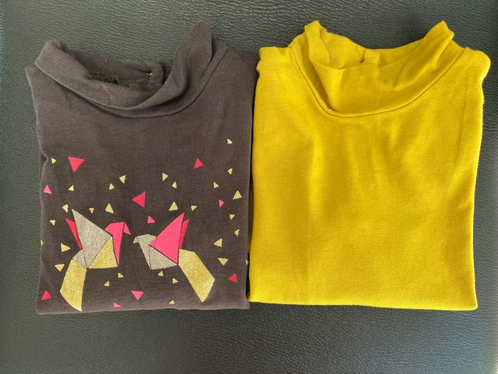 Lot de 2 pulls fins, avec col cheminée, avec 3 boutons dans le dos, un moutarde un marron, 95% coton 5% elasthane, de marque Babyclub (C&A), taille 12 mois (80 cm) Très bon état