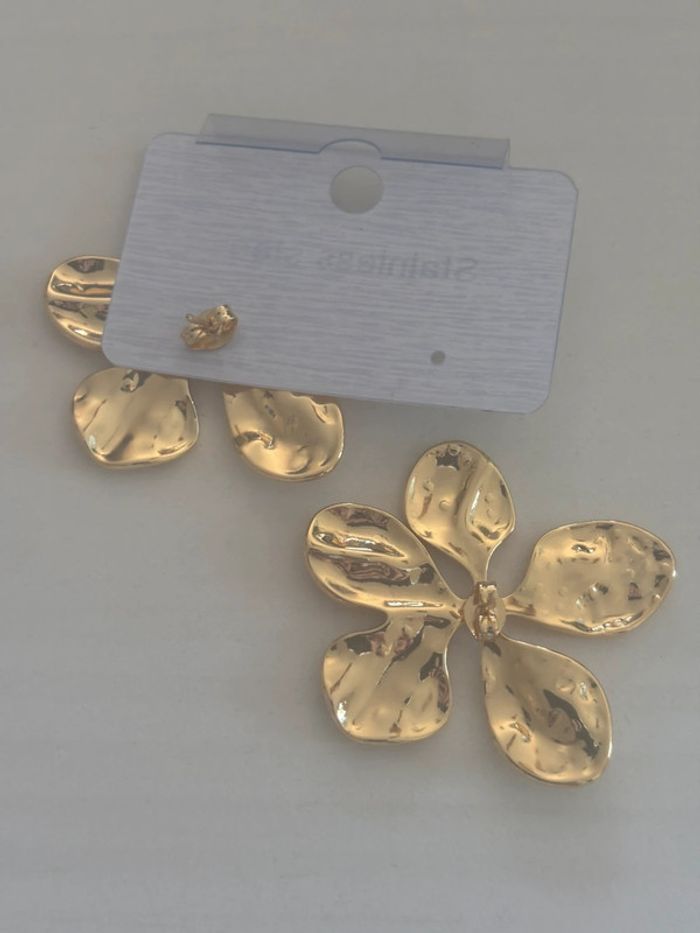 Boucles d’oreilles fleurs grand taille acier inoxydable doré - photo numéro 1