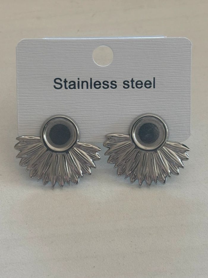 Boucles demi fleurs acier inoxydable argent - photo numéro 2