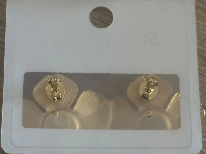 Boucles d’oreilles fleurs bleu acier inoxydable doré - photo numéro 2