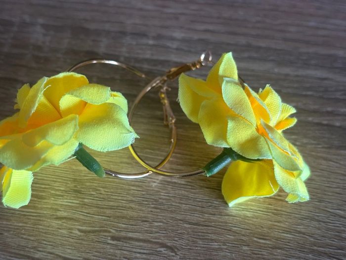 Créoles fleurs jaune et doré - photo numéro 2
