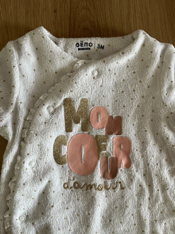 Pyjama velours mon cœur d’amour gemo 3 mois - photo numéro 3