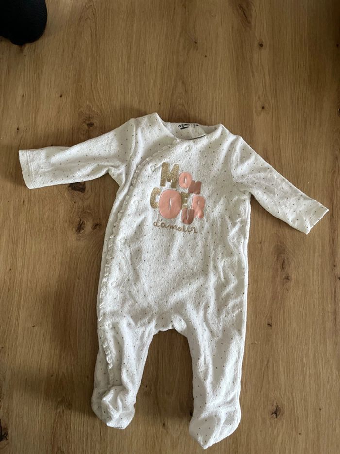 Pyjama velours mon cœur d’amour gemo 3 mois - photo numéro 1