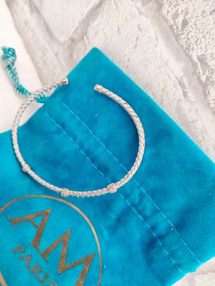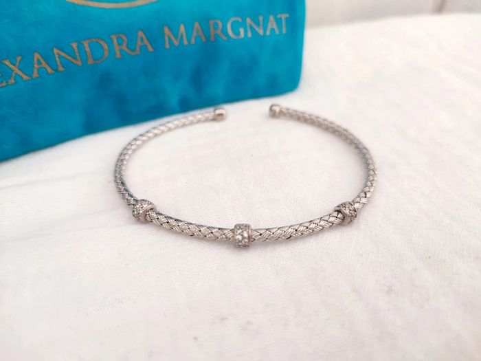 Très beau bracelet jonc en argent 925 avec cristaux Alexandra Margnat taille ajustable / excellent état remise activée sur les lots