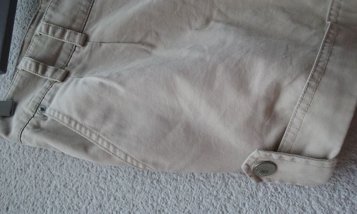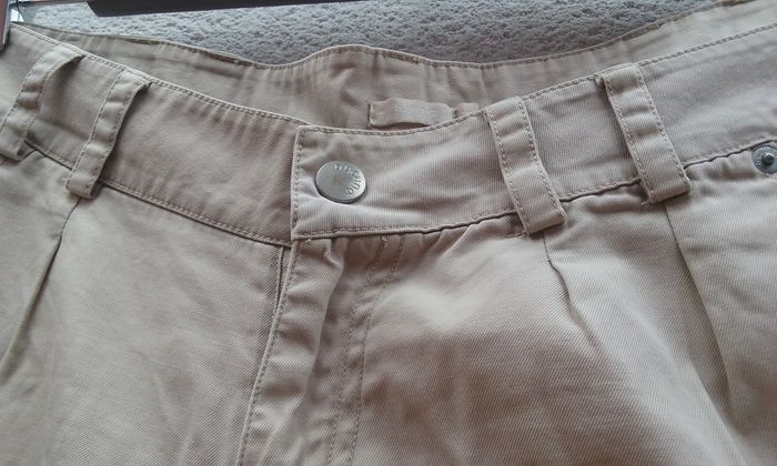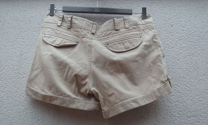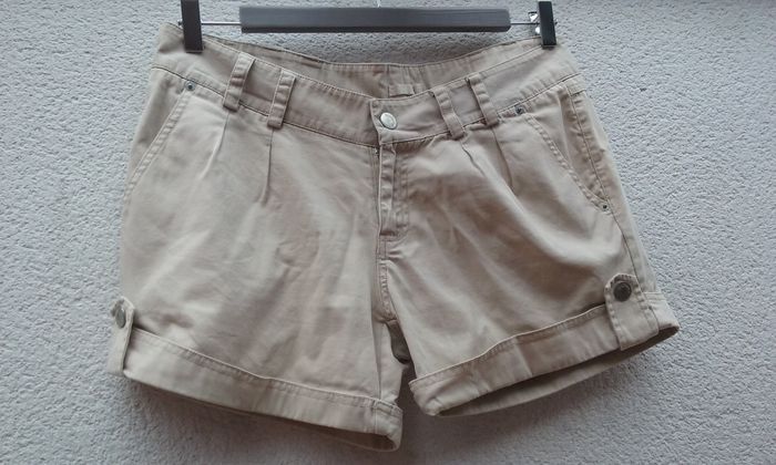 Short à pinces, fermeture à pression et zip, 4 poches dont 2 pressionnées, passants pour une éventuelle ceinture, possibilité d'augmenter la longueur, 100% coton, coloris beige.