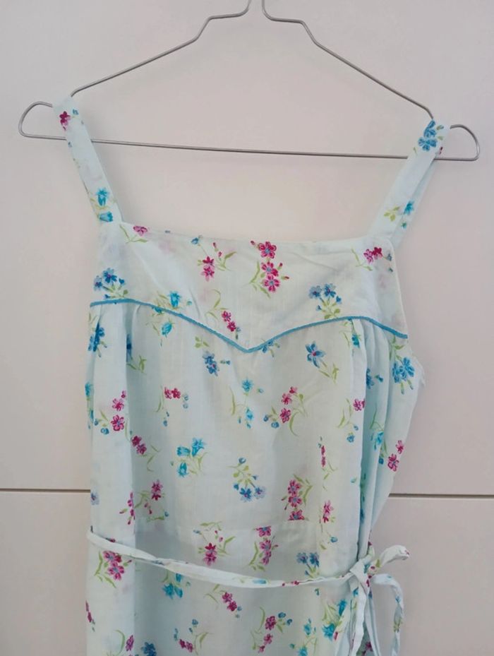 Robe vintage bleu pâle en coton à bretelles - photo numéro 2