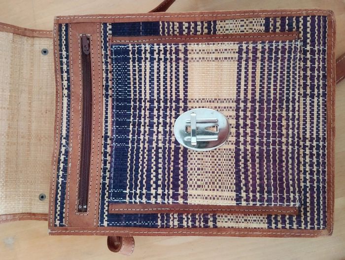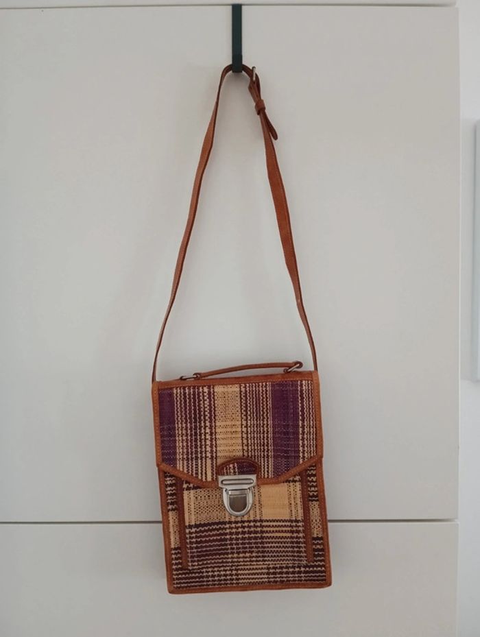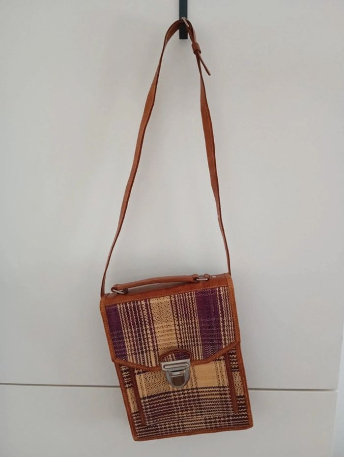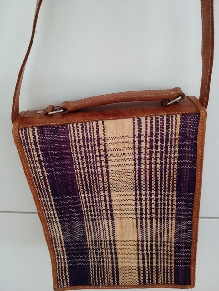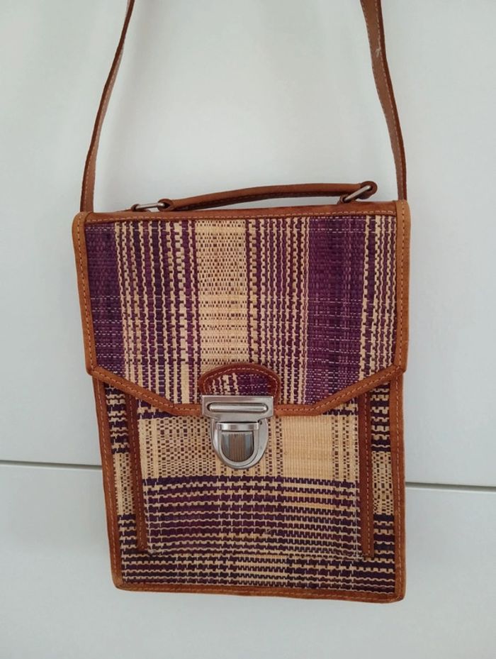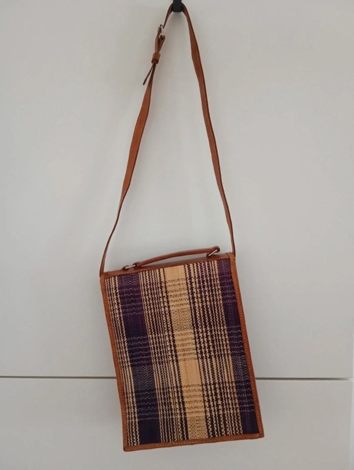 Sacoche / sac tressé en raphia bordures et anse réglable(courte) en cuir Hauteur 25cm Largeur 19cm Épaisseur 4cm Hauteur anse 36cm