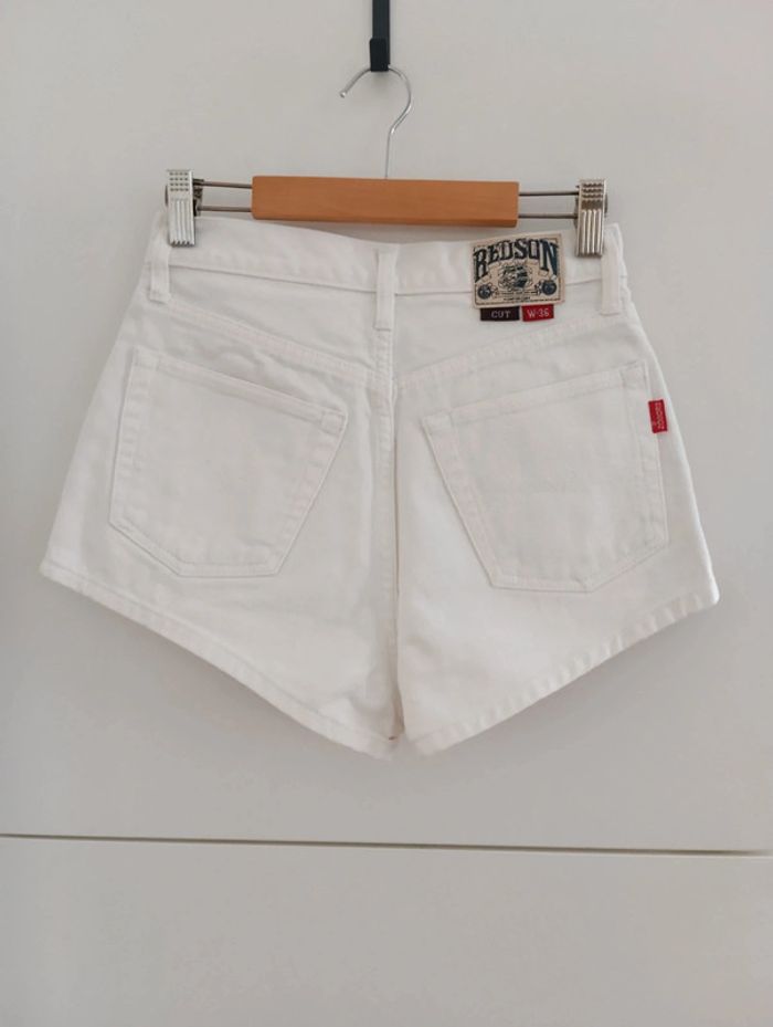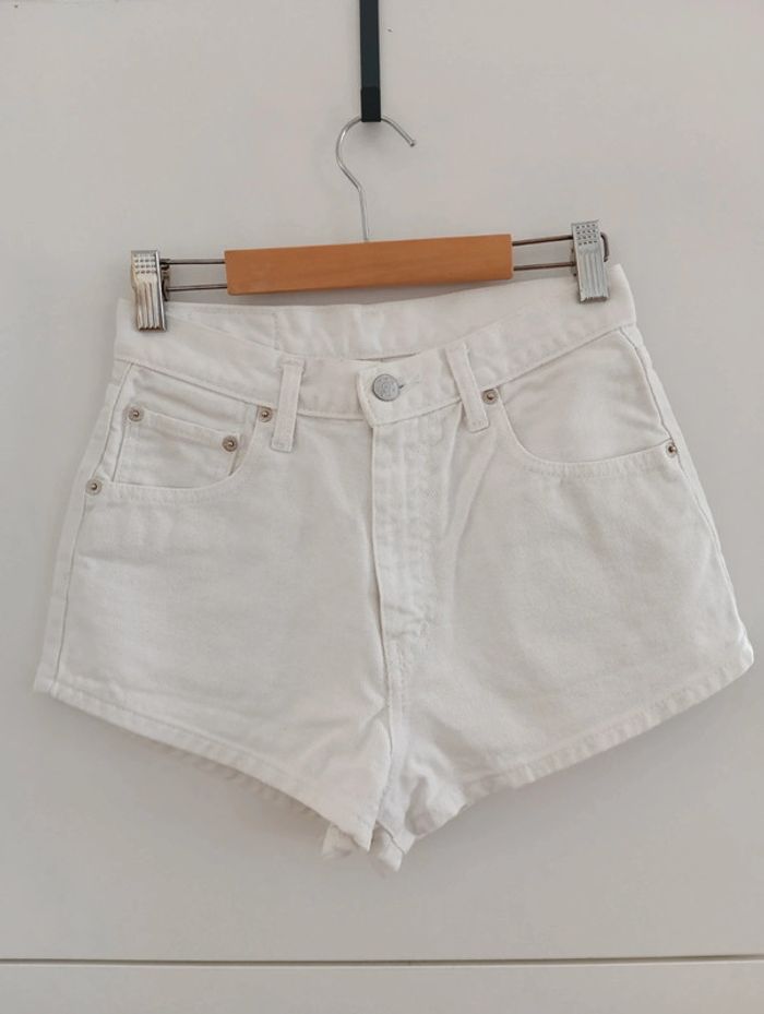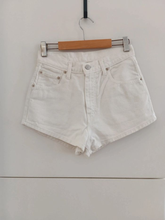 Mini short vintage en jean blanc Taille haute, Taille 34 à confirmer avec les mesures Mesures Taille 32cm Longueur 26cm