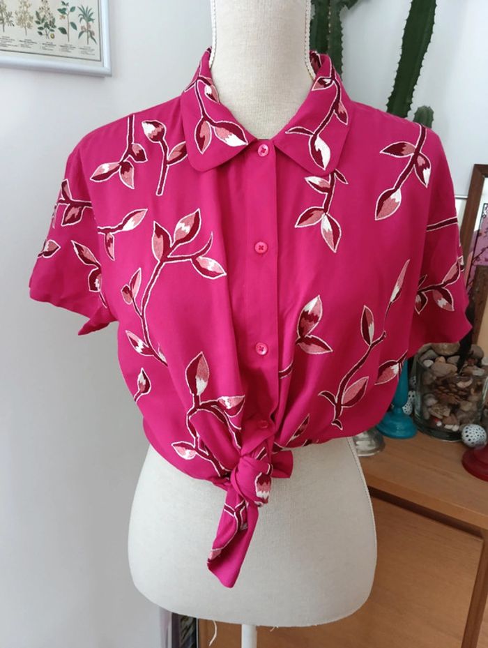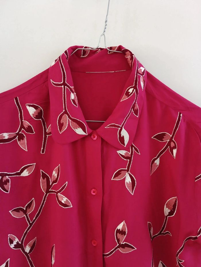 Chemise vintage fushia à fleurs brodées - photo numéro 11