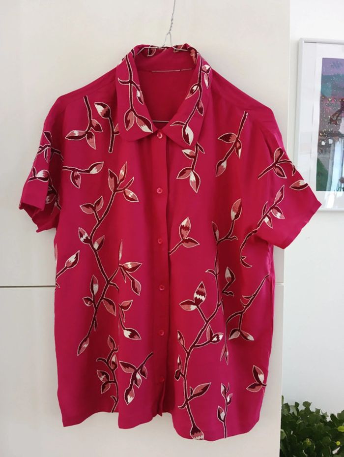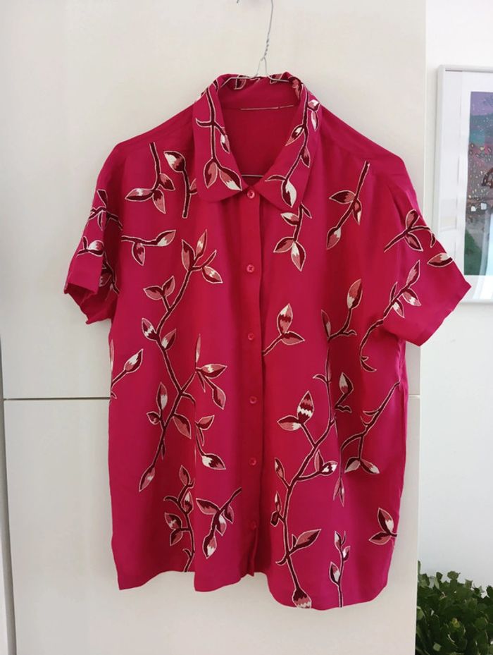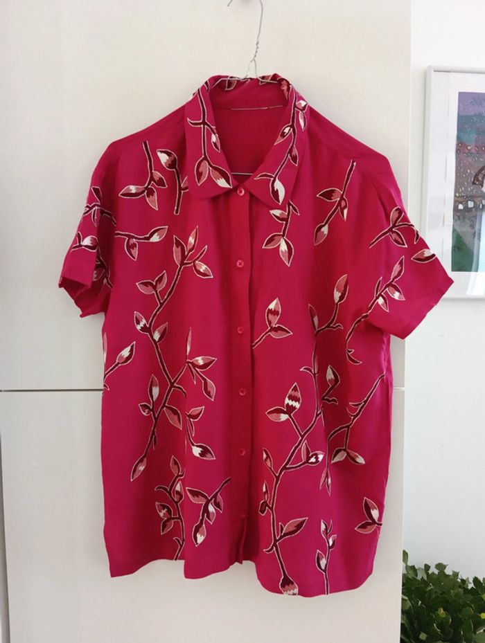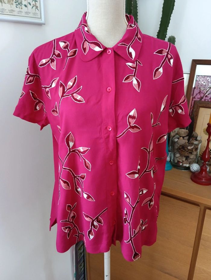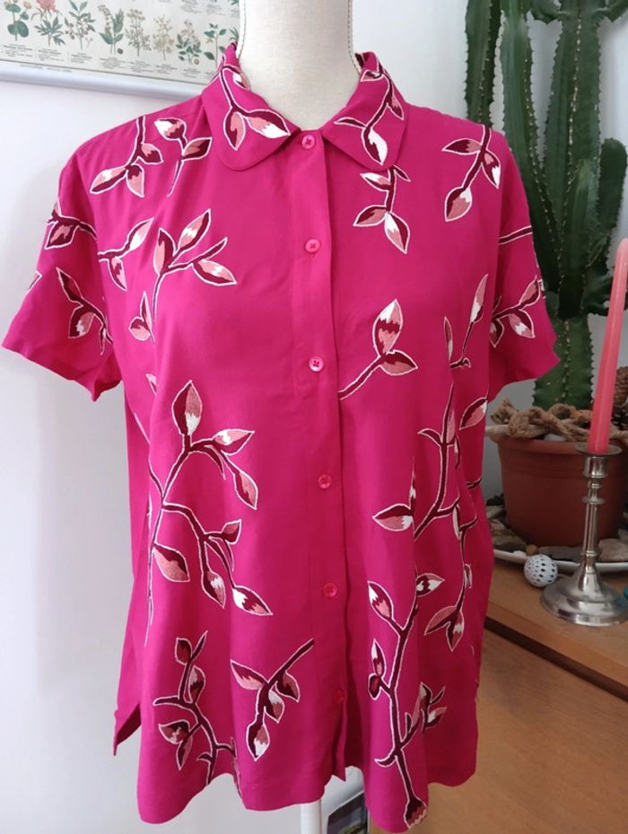 Chemise vintage fushia à fleurs brodées - photo numéro 1