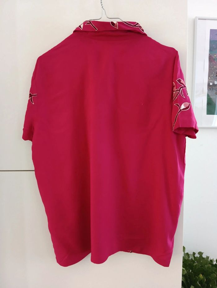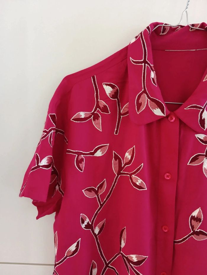 Chemise vintage fushia à fleurs brodées - photo numéro 7