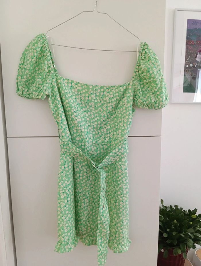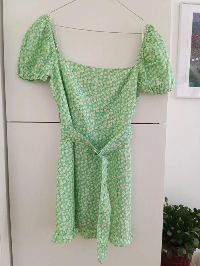 Mini robe verte a fleurs Zara taille M - photo numéro 9