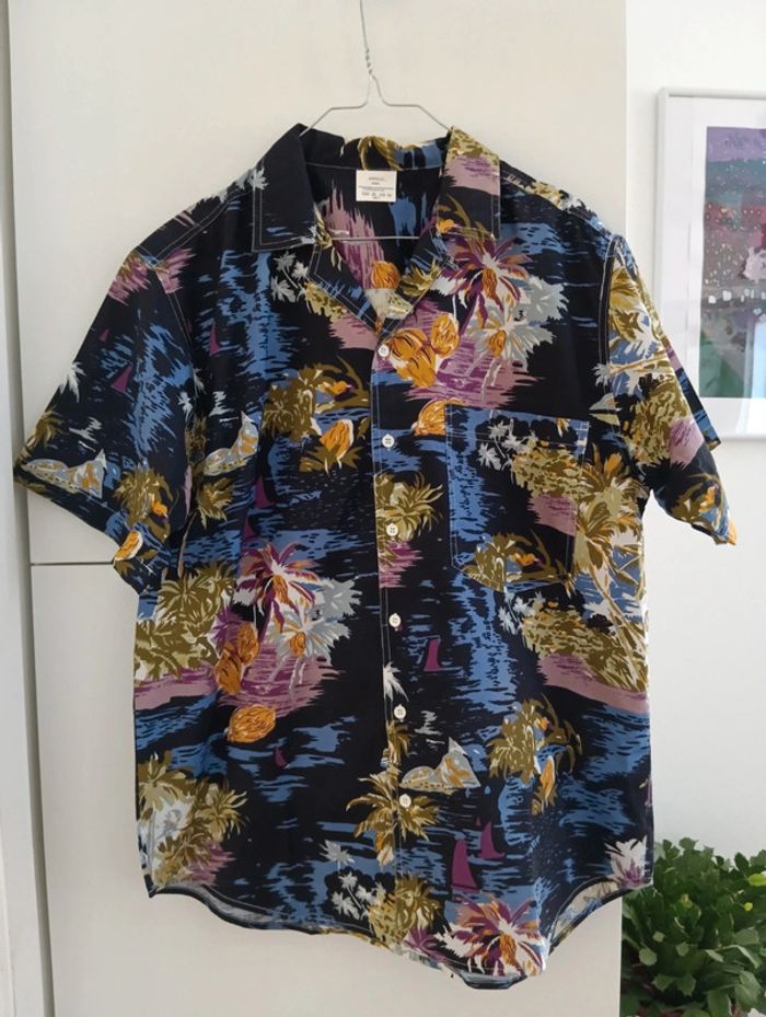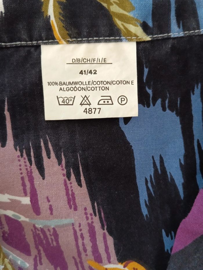 Chemise style hawaïenne en coton multicolore Taille 41/42 indiquée Taille L estimée 100% coton Mesures Epaules 48cm Aisselles 59cm Longueur 77cm