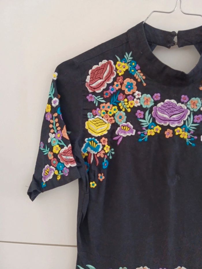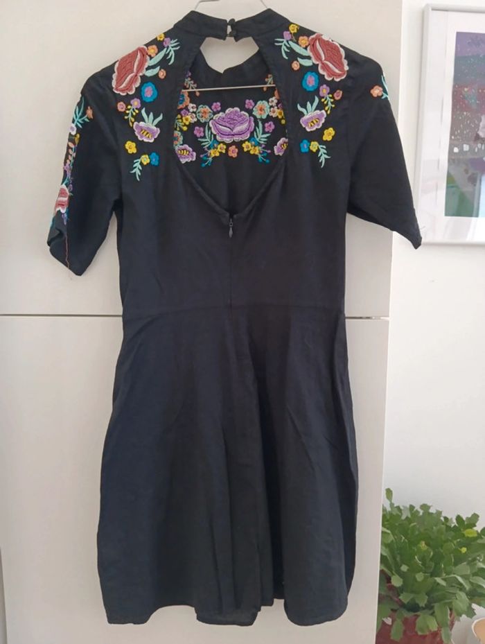Robe noire brodée fleurs multicolore Asos taille 36 - photo numéro 3