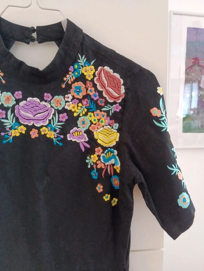 Robe noire brodée fleurs multicolore Asos taille 36 - photo numéro 5